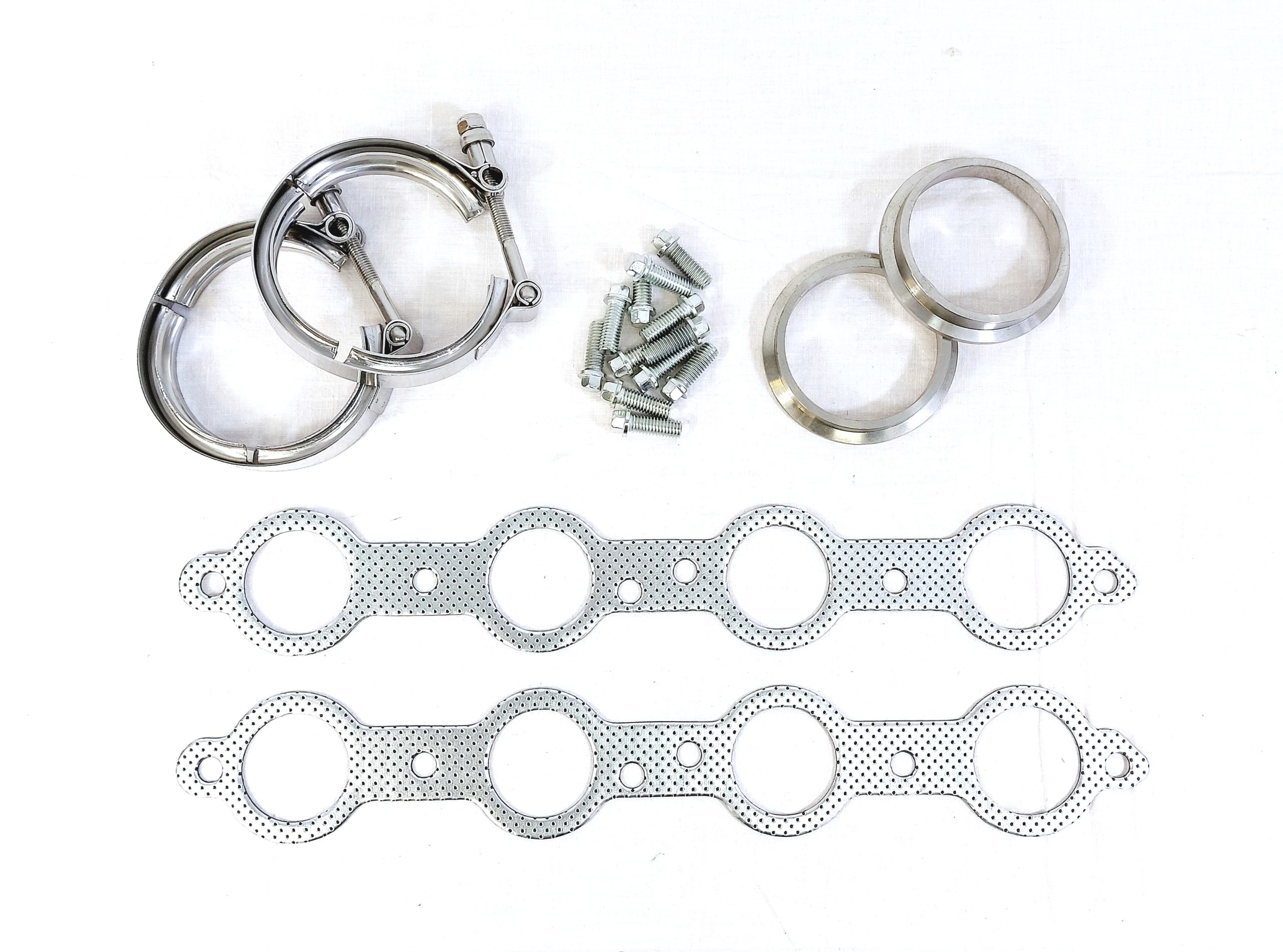 Grenrörspackningar, flänsar, klammor och bultsats ingår.