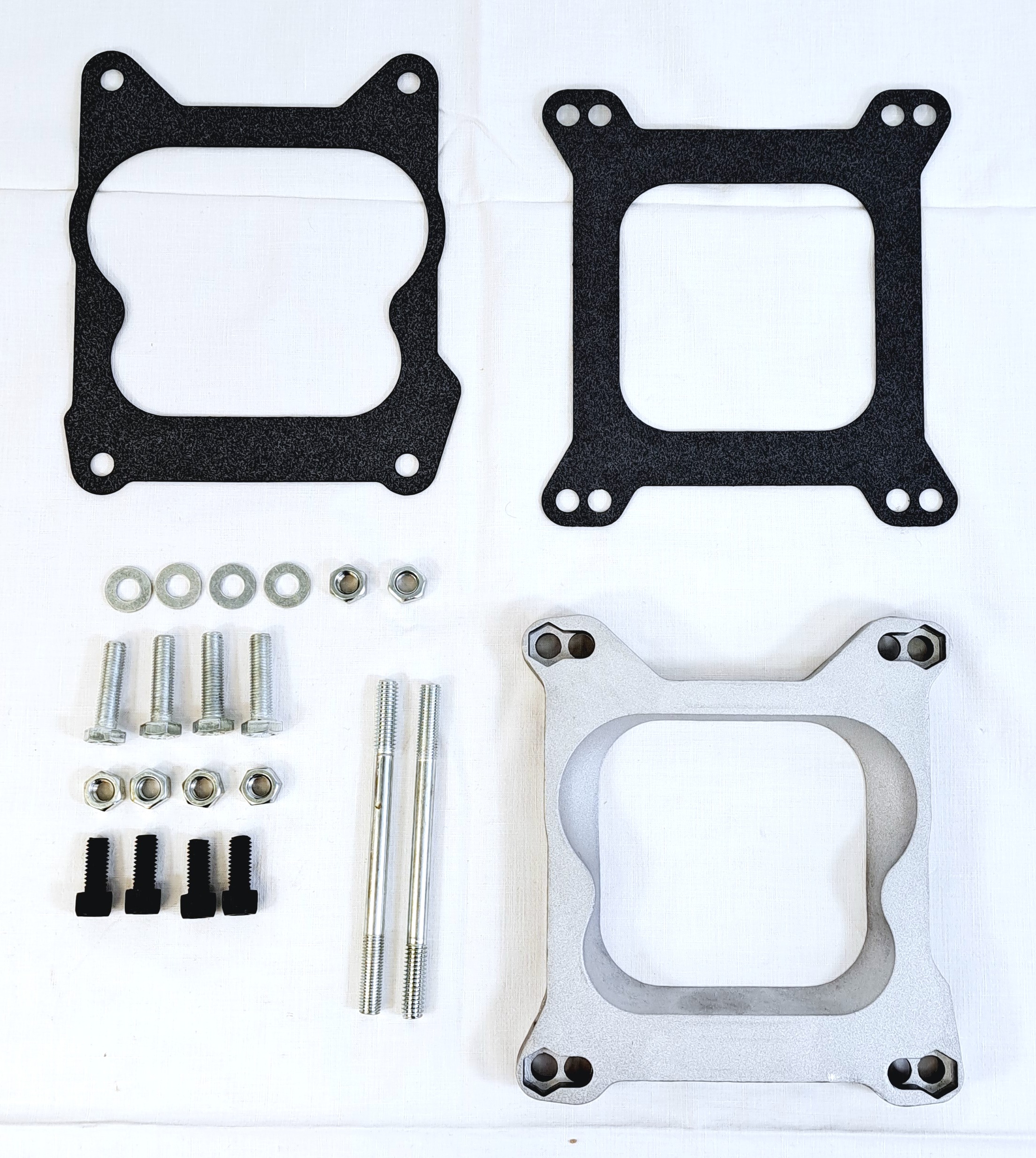 Distansplatta gjord av aluminium, square bore med två packningar.