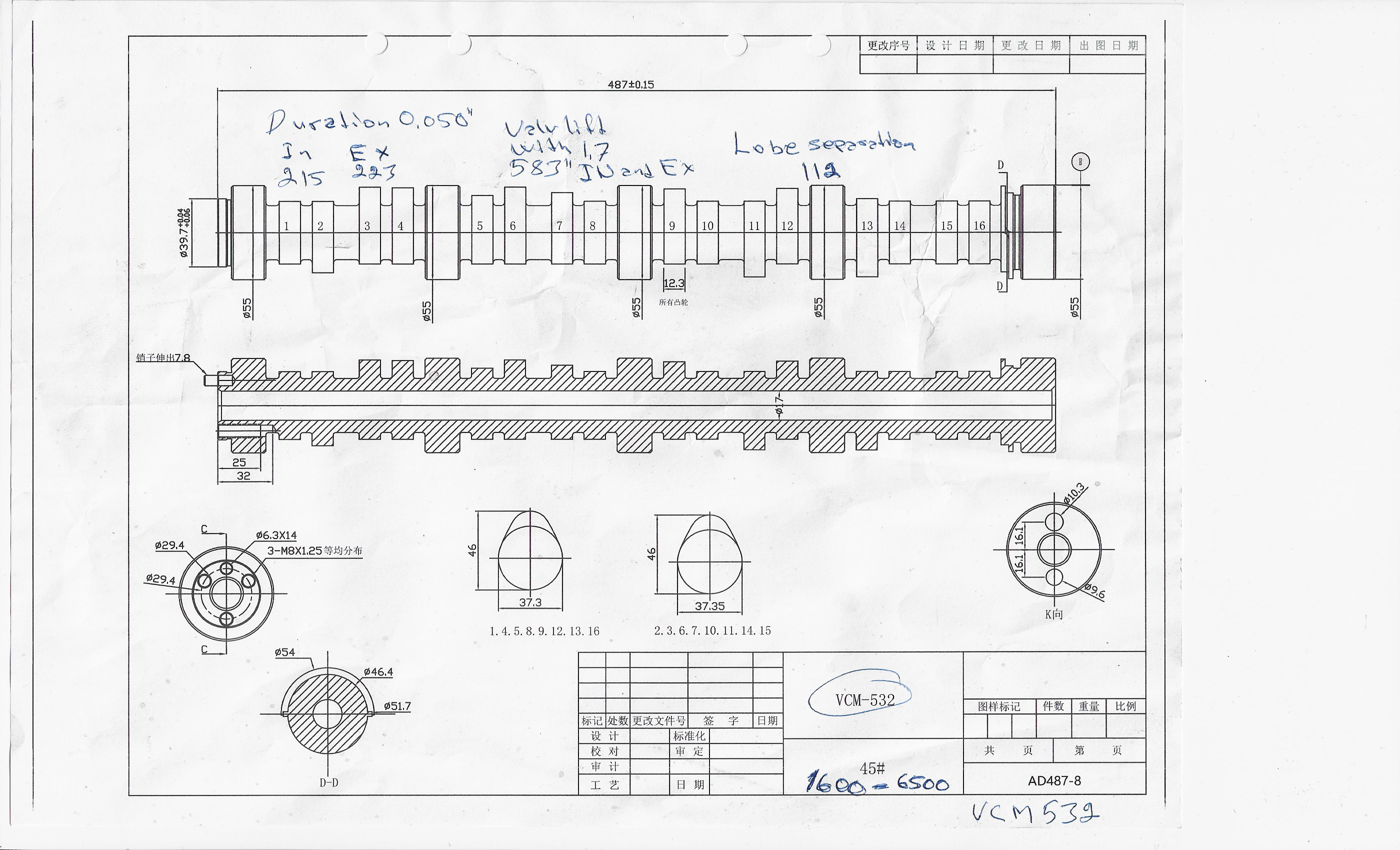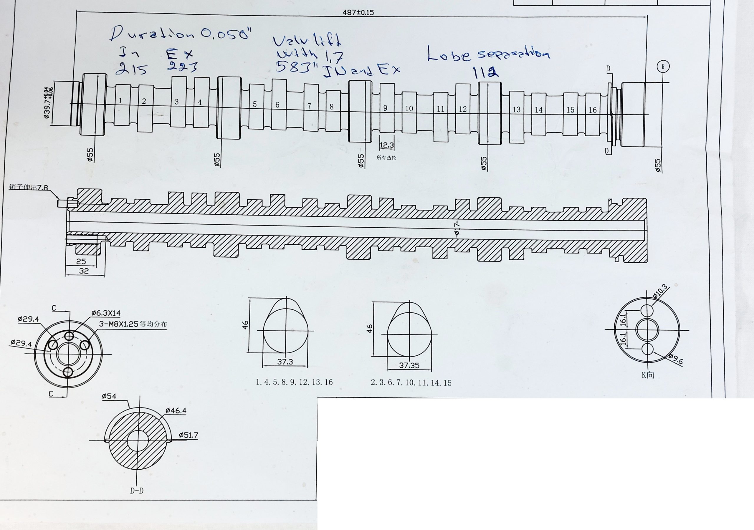 3 bultat kamdrev passar på denna kamaxel.