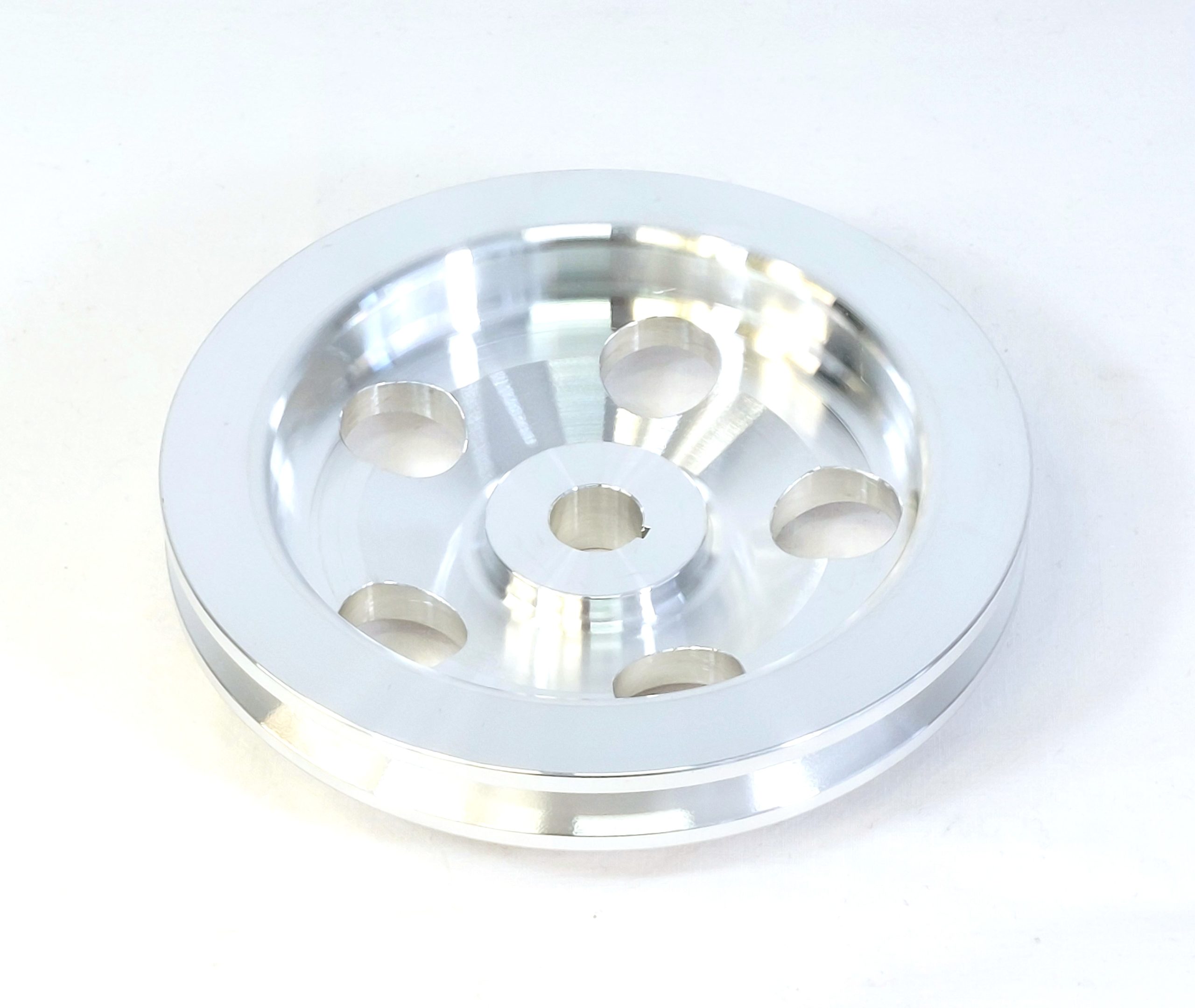 Enspårig remskiva för styrservopumpen.