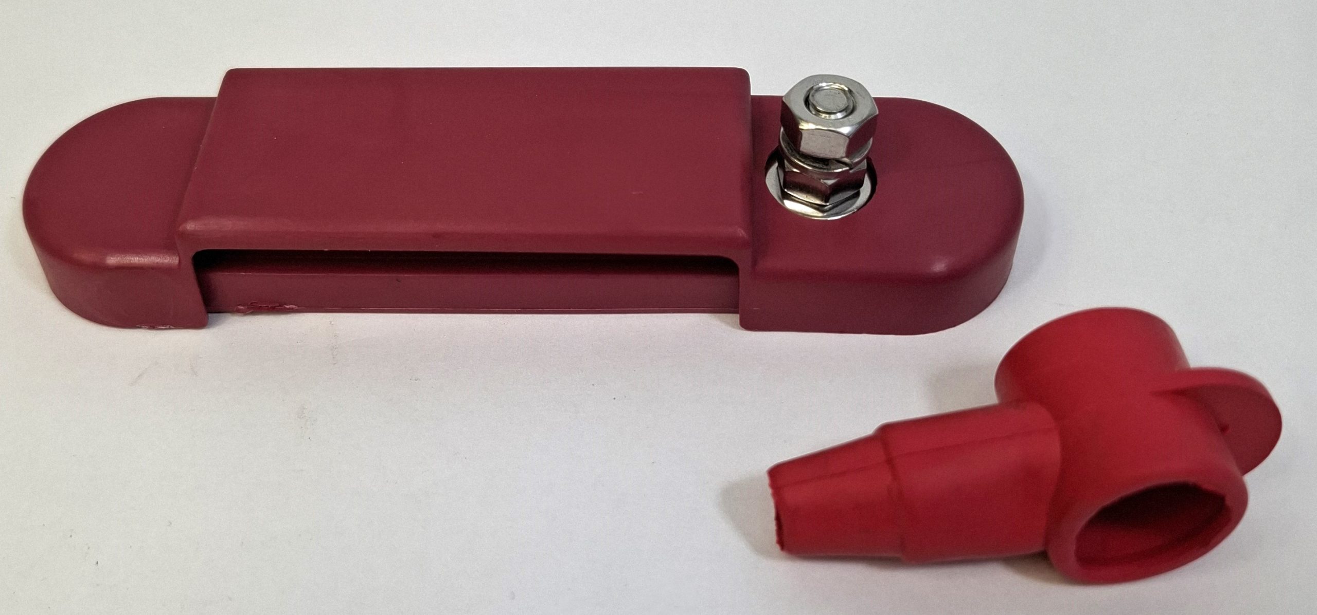 Kontaktblock i rostfritt stål, röd med kåpa över