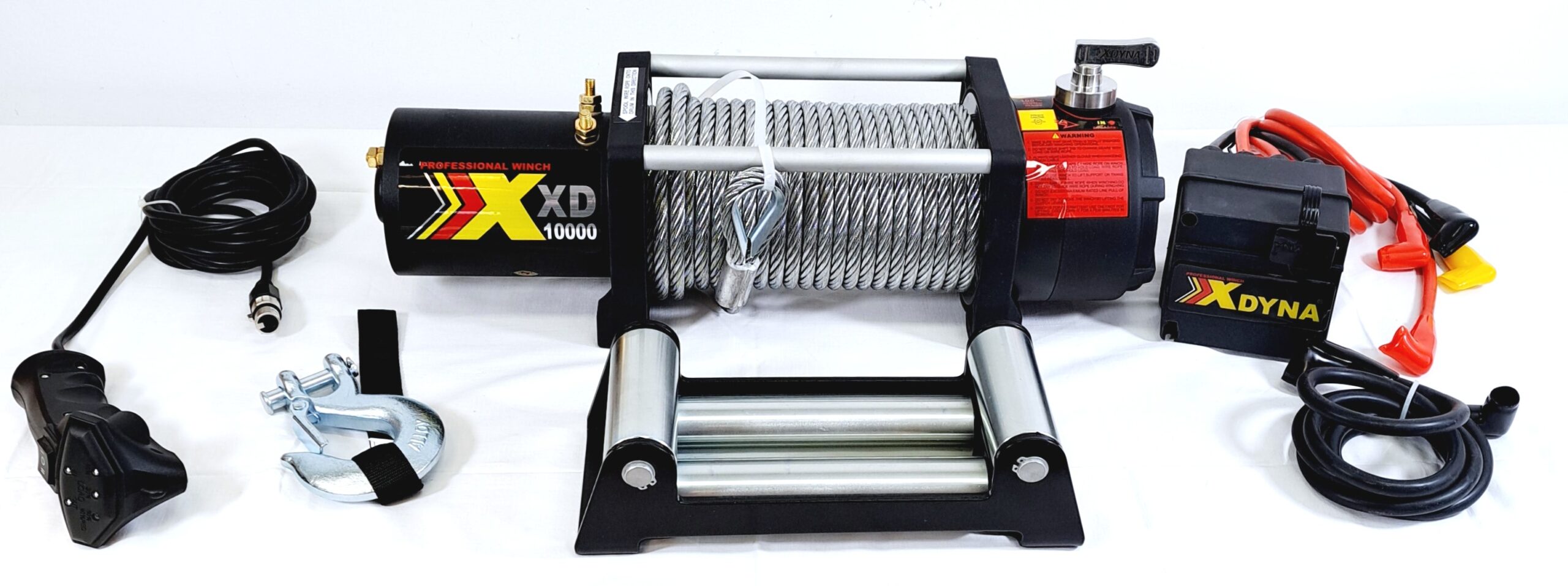 En kraftig elvinsch komplett med stålwire och elstyrning.