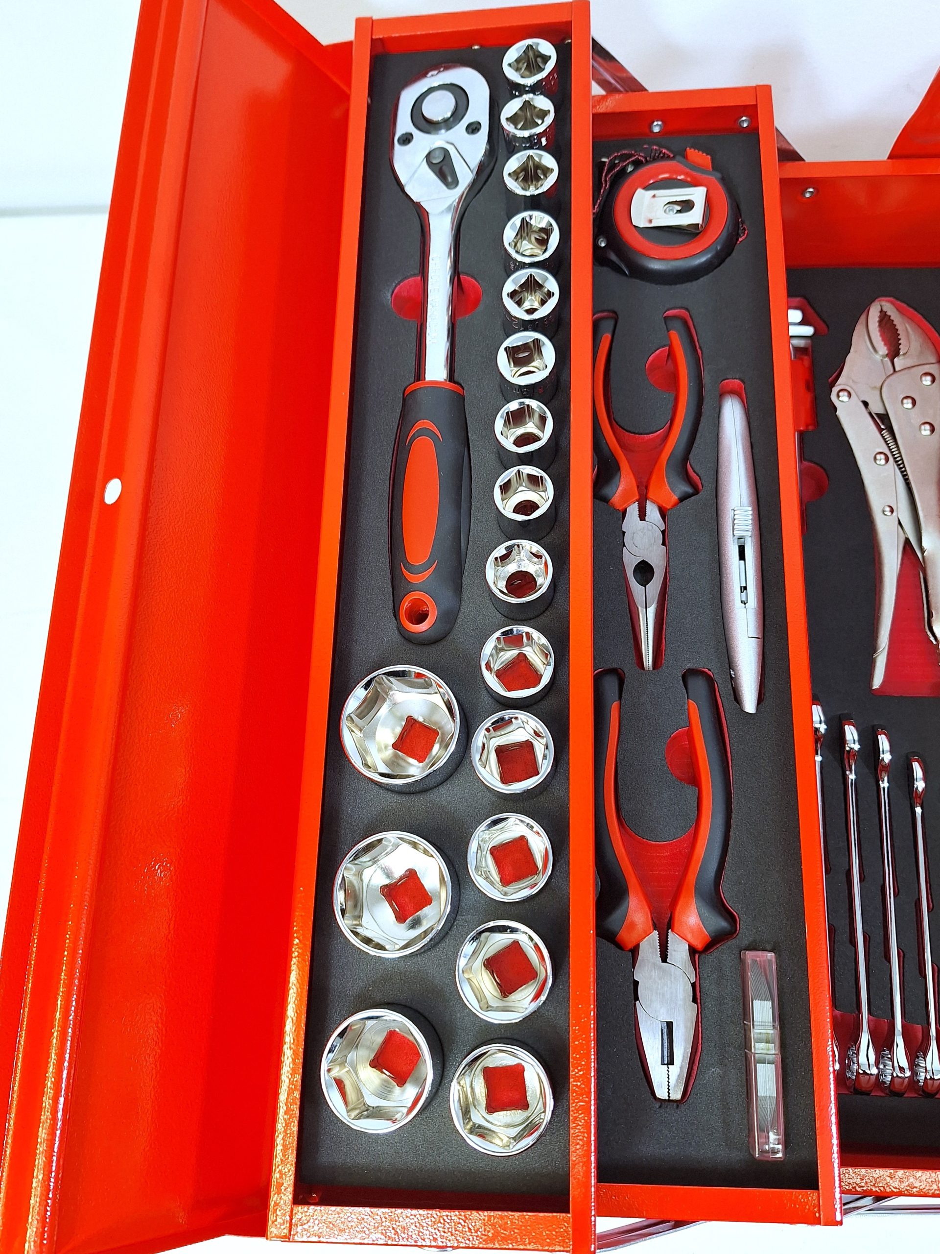 En praktisk verktygslåda som innehåller 75 delar.